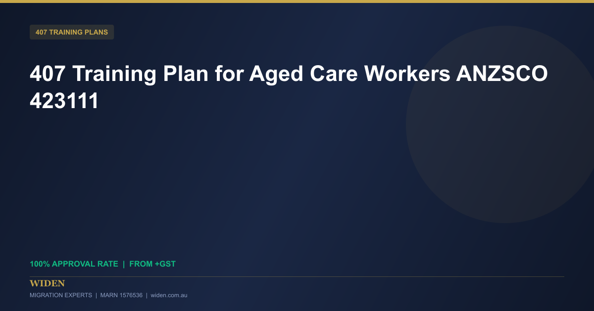 The subclass 407 training visa is an excellent pathway for organisations needing to upskill aged care workers in Australia. If you’re looking to develop your workforce under the ANZSCO 423111 classification (Personal Care Worker – Aged Care), a properly structured 407 training plan is essential. At WIDEN Migration Experts, we specialise in creating ANZSCO-aligned training plans that meet Department of Home Affairs requirements with a proven 100% approval rate since 2018.
