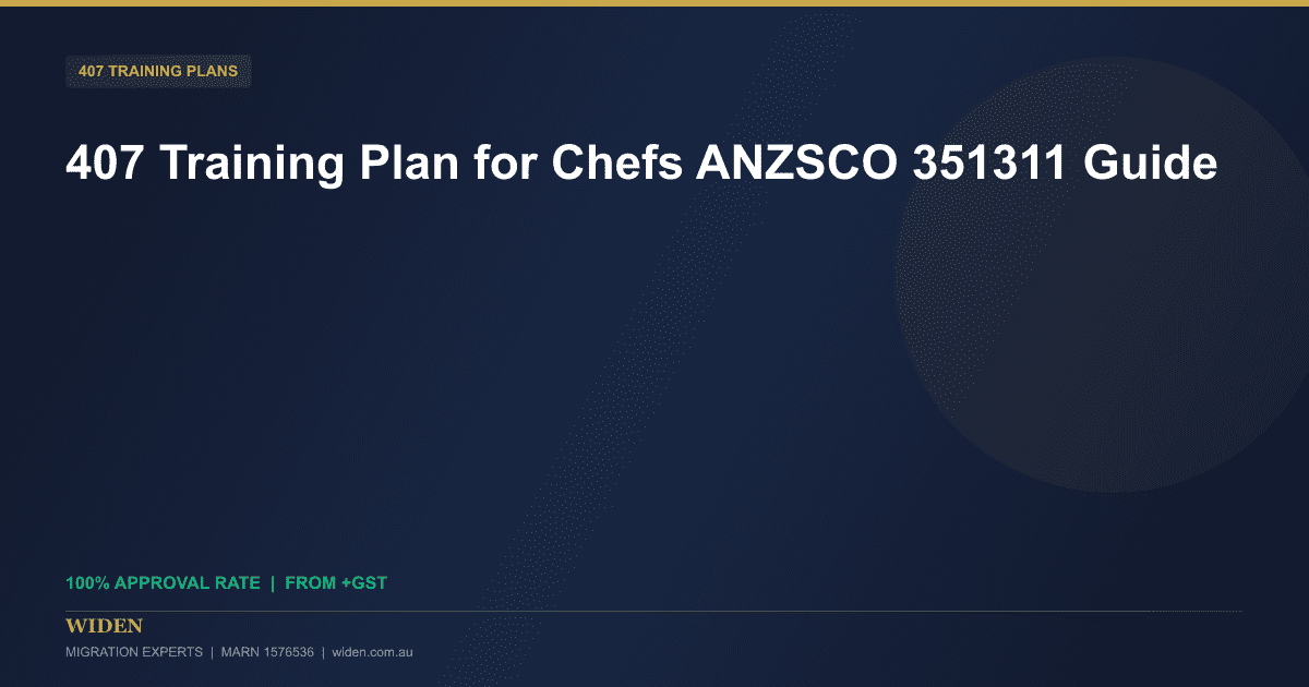 A 407 training plan for chefs and cooks is a crucial document if you’re sponsoring international culinary professionals under Australia’s subclass 407 visa. At WIDEN Migration Experts, we specialise in crafting ANZSCO-aligned and AQF-mapped 407 training plans that meet Department of Home Affairs requirements with a proven 100% approval rate since 2018. Our MARA registered agent Keshab Chapagain (MARN 1576536) based in Campsie, Sydney, has assisted hundreds of hospitality businesses streamline their chef and cook sponsorship process.