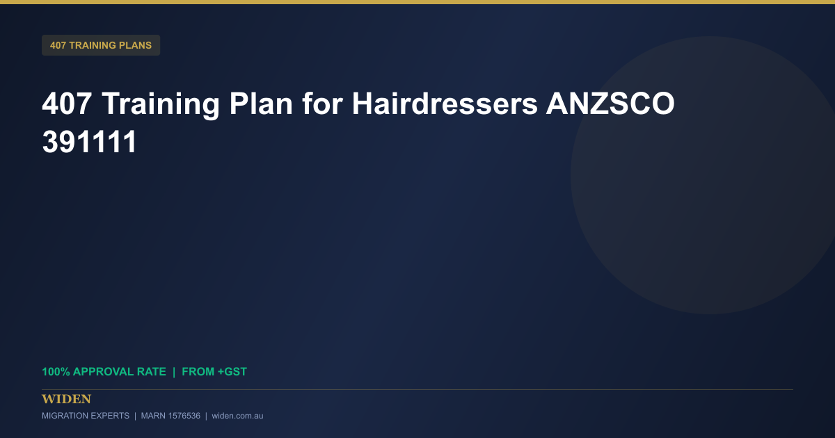 A 407 training plan for hairdressers is an essential document for employers in Australia who wish to sponsor international beauty professionals under the Subclass 407 Training Visa. At WIDEN Migration Experts, we specialise in creating ANZSCO-aligned and AQF-mapped training plans across multiple occupations, including hairdressing professionals classified under ANZSCO code 391111. With a proven 100% approval rate since 2018, our team of MARA registered agents delivers comprehensive training documentation tailored to your specific business requirements.