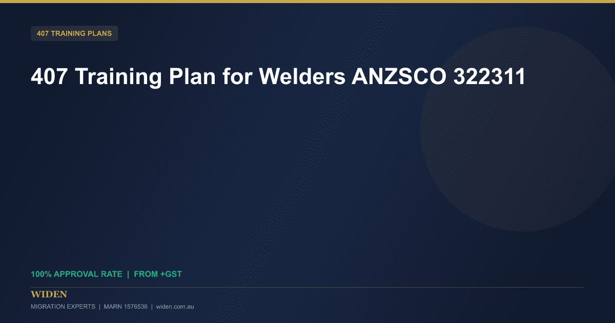 This guide explains what welders need to know about 407 training plans, the specific ANZSCO 322311 requirements, costs, and how Widen Migration Experts can streamline your visa journey.